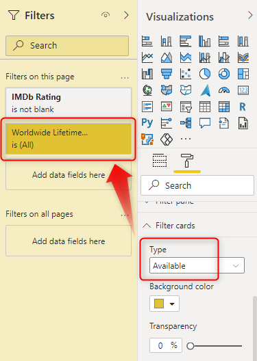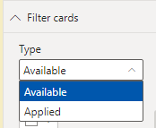To format the cards inside a filter, you can use the Filter card setting. Before you start the formatting here, you have to know there are two types of cards for formatting; Applied and Available.