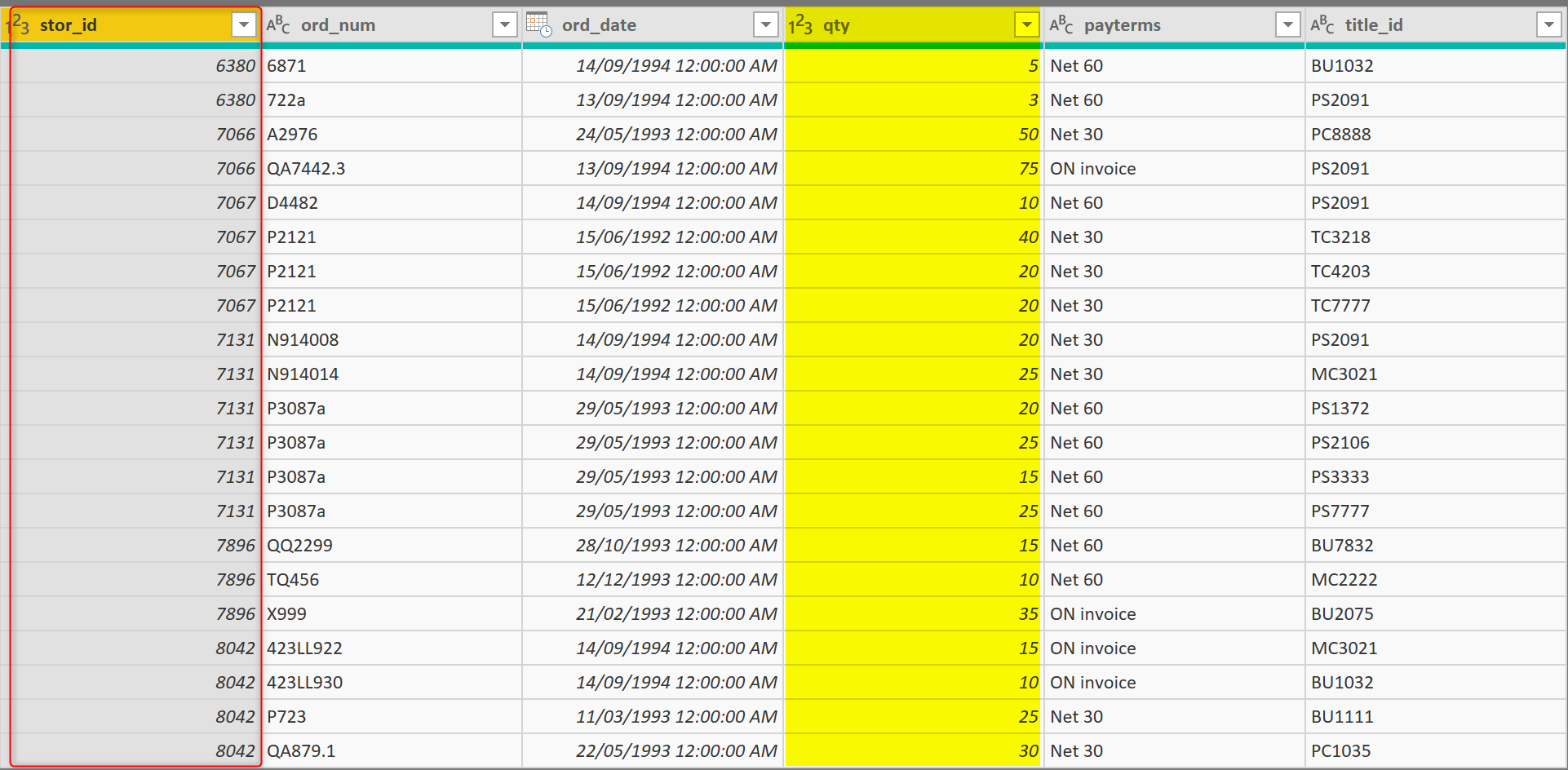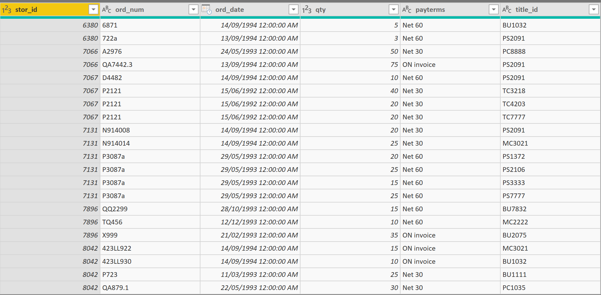 Now let’s check what happens if we have more than one table; Let’s say there is a Sale table also as part of the solution. Sales table have some information, such as how many of each book title, at which date, at what store is sold. Here is a screenshot of the data in the Sales table;