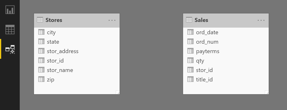 In this example, we need both tables, because they both contain fields that we need in our visualization: State field from Store table, and Qty field from the Sales table. The stor_id field is the field that can help us in looking up one value in the other table. Let’s see that through an example: