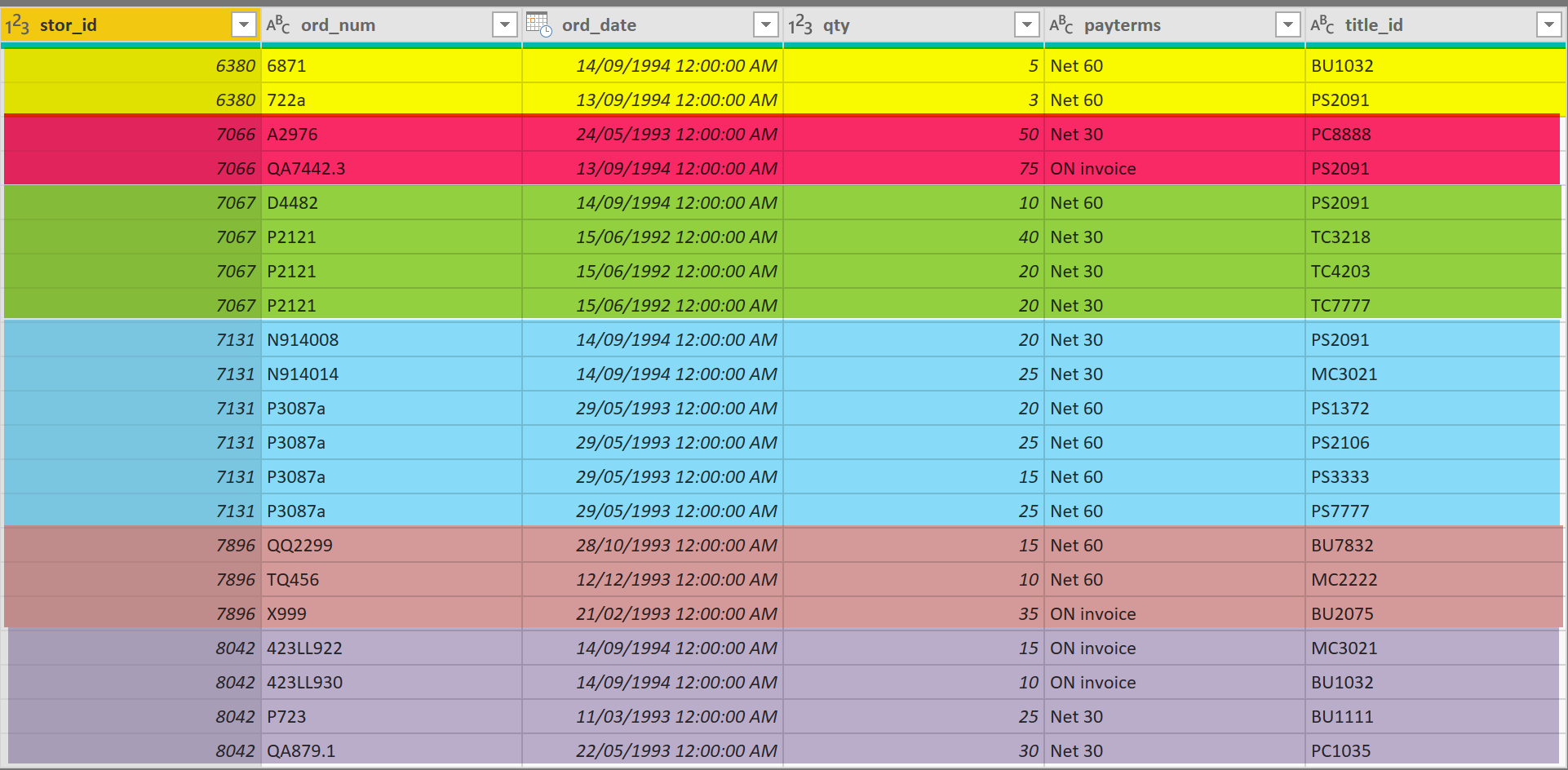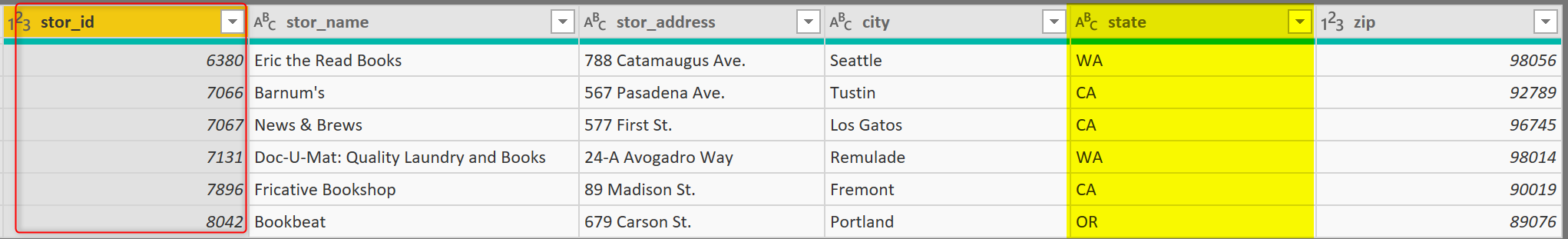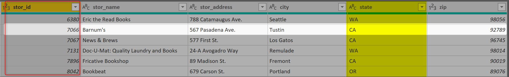 If we want to filter this table by store, the only field that gives us such ability is stor_id and that doesn’t know anything about the state.