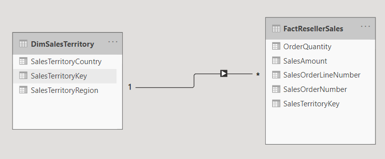 The sample model we have here includes two tables, one for sales transactions and another for the sales territory country. Based on the country.