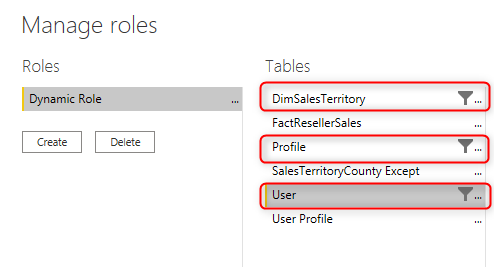 The role definition in Power BI would be including three filters as below;