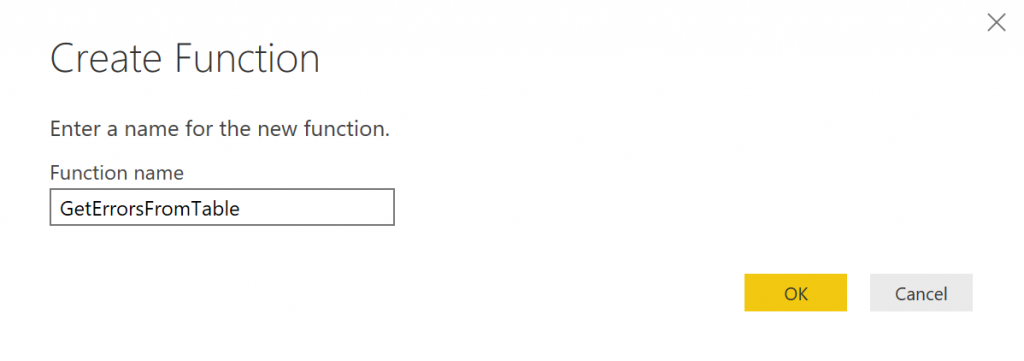 Let’s call the function as GetErrorsFromTable (function name can have space too, but it would make our code much cleaner if we avoid it);