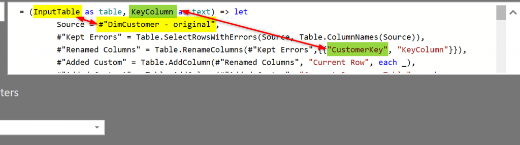 #"Renamed Columns" = Table.RenameColumns(#"Kept Errors",{{KeyColumn, "KeyColumn"}}),