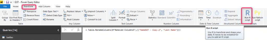 Now I want to store back it into my PC, to do that, you need to navigate to Power Query Editor, then click on Transform, then Run R Scripts