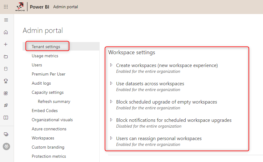 Tenant Admin Control for Workspace