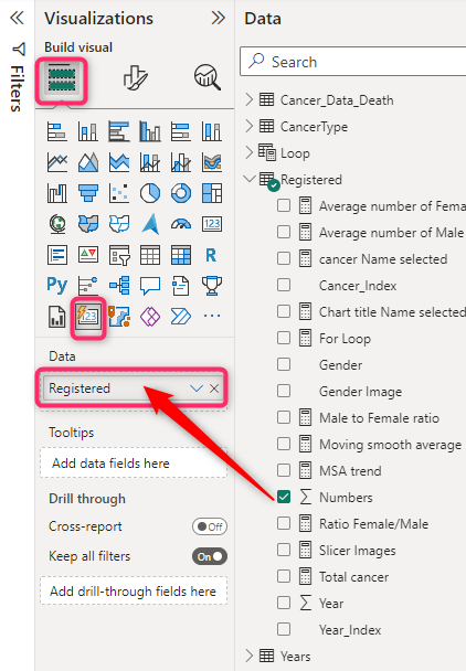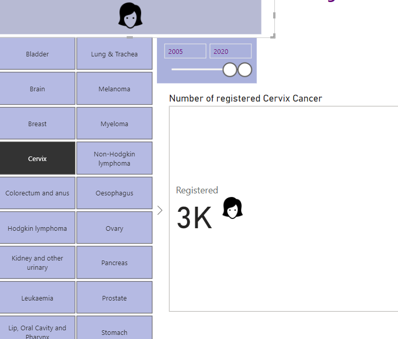 I have a card visual that shows the number of registered cancer data for selected cancer from slicer.