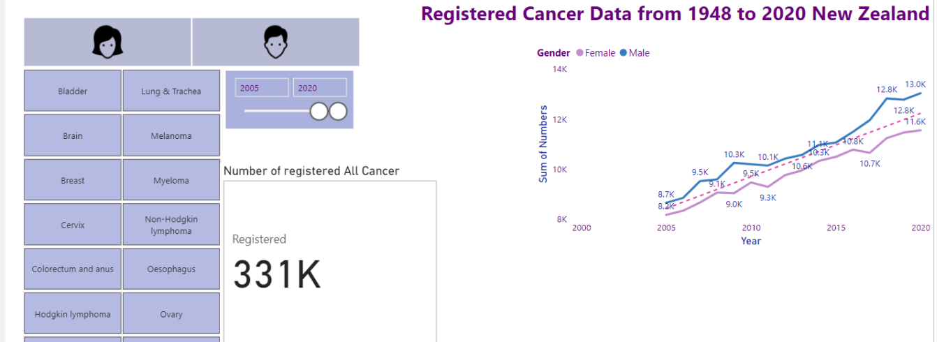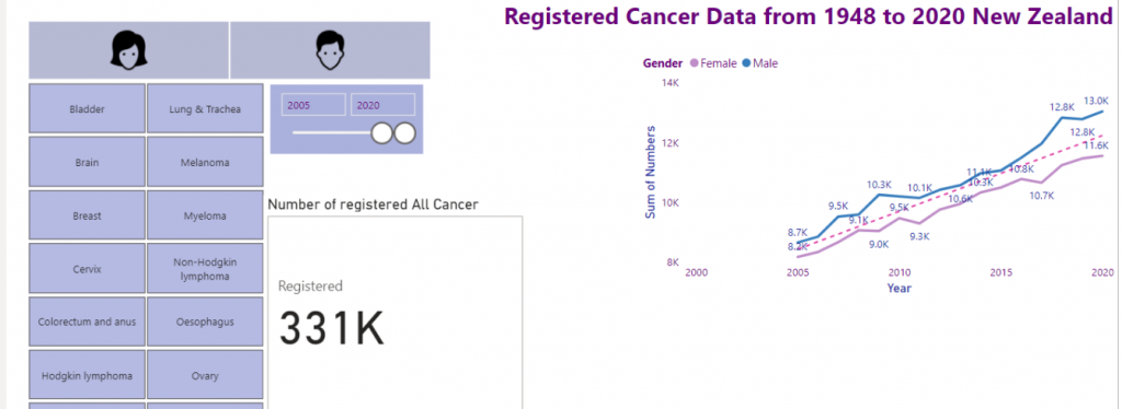 In this blog post, I will show some data related to cancer in New Zealand based on gender and cancer type.