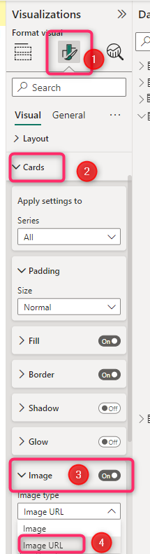 Now I need to change some settings on the format of the Card’s visual