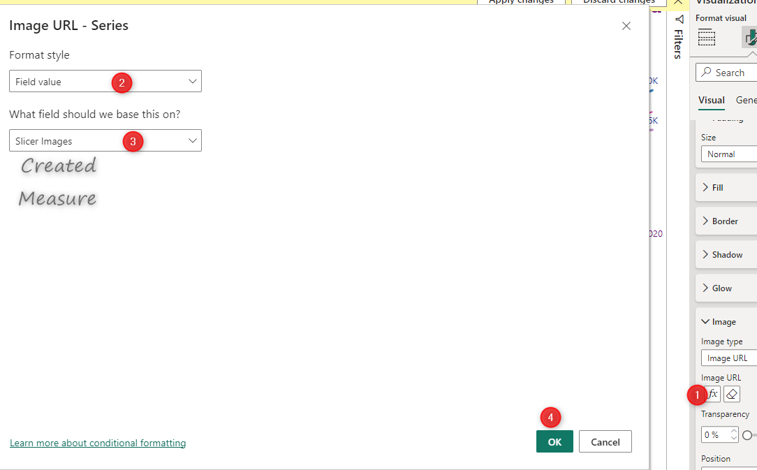 Use the conditional formatting to assign the created measure to the Image URL