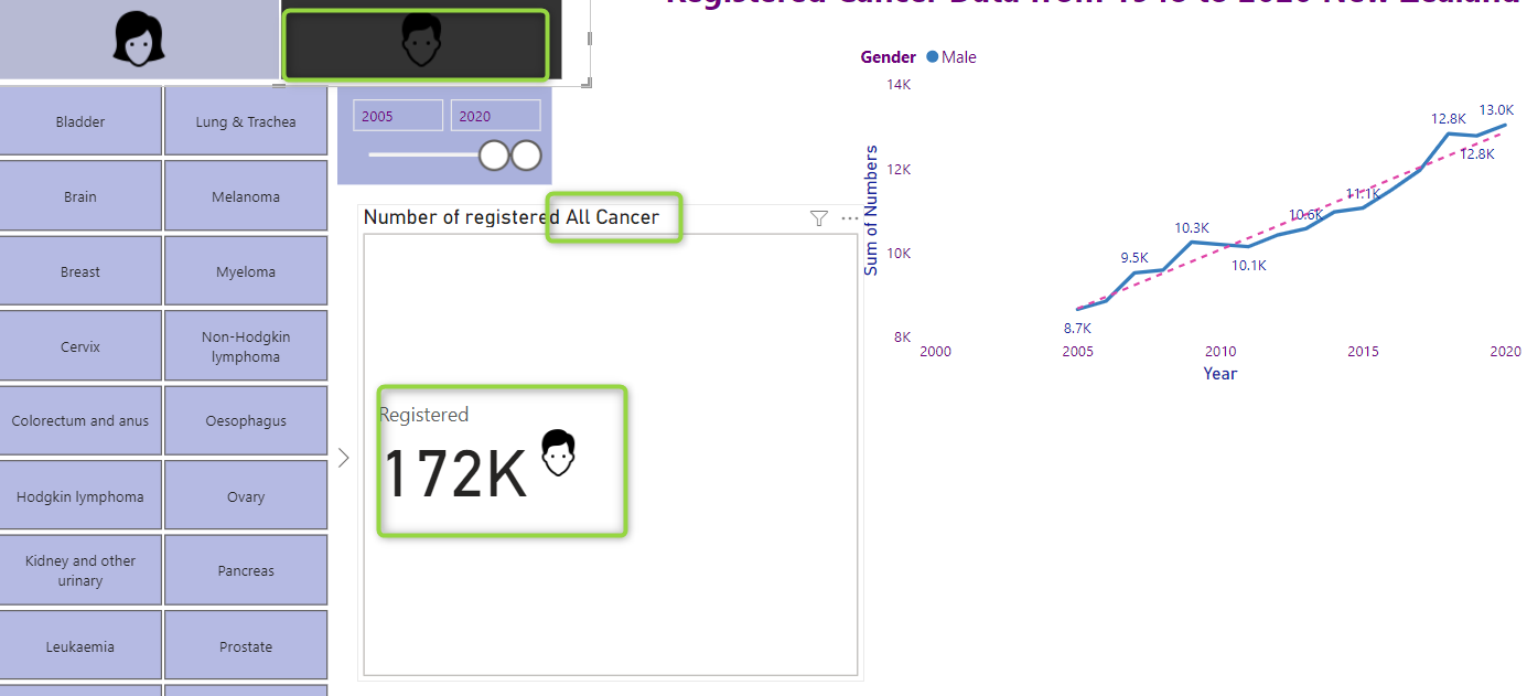 When there is no selection, the card visual shows all cancer for all gender as below