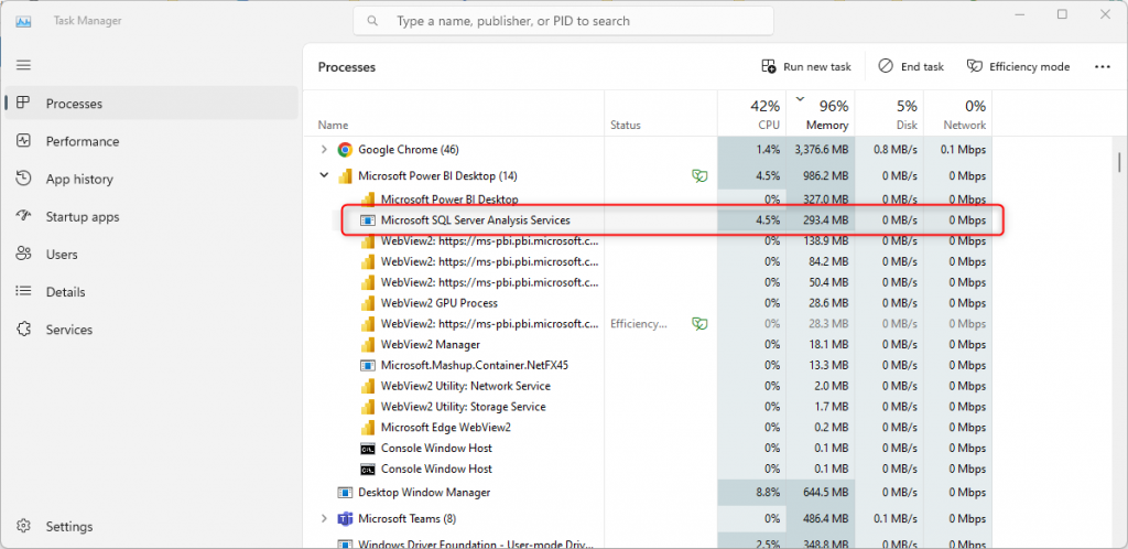 This component is the analytical core and engine of the Power BI data model. The Tabular engine installs as part of Power BI Desktop, with no specific editor window. All modeling, calculations, and configurations will be in the Power BI Desktop window. DAX and Modeling are builtin within Power BI Desktop in a way that most people consider as the non-detachable part of Power BI Desktop. However, the data model component of Power BI is a separate object called a Dataset.