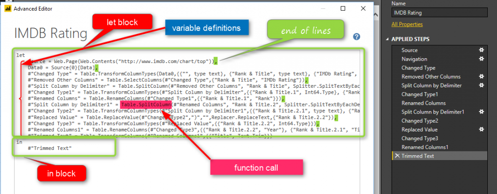 Power Query uses a functional language called M. M is the behind-the-scene language for the data transformation in Power BI.