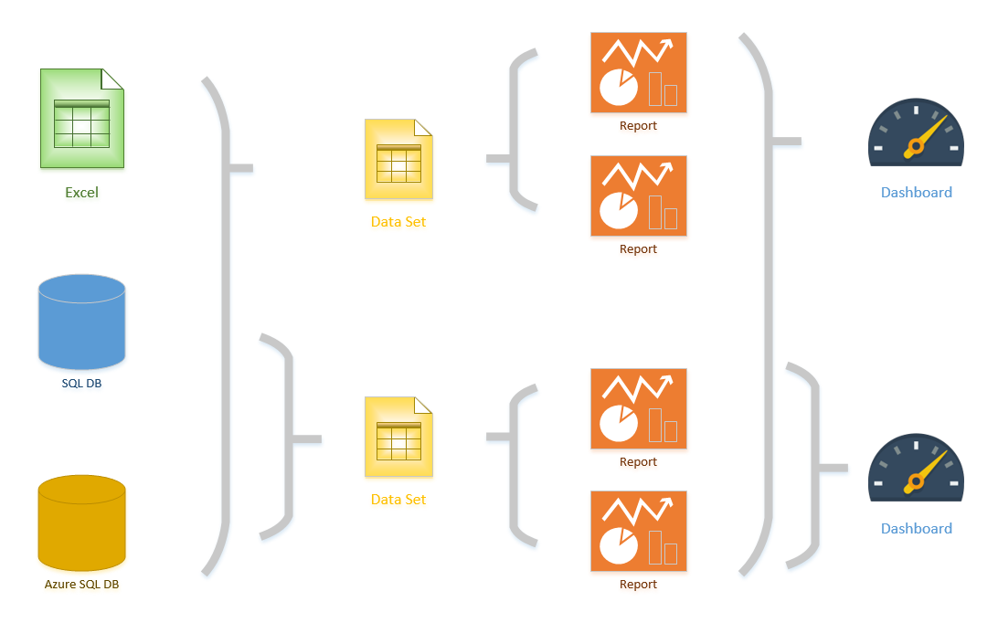 Every component of Power BI is responsible for a specific part of the technology. There are components for building reports, connecting to data sources, doing analytics calculations, sharing reports, etc. The following sections explain what each component is. Some of these components are explained in detail in other articles.