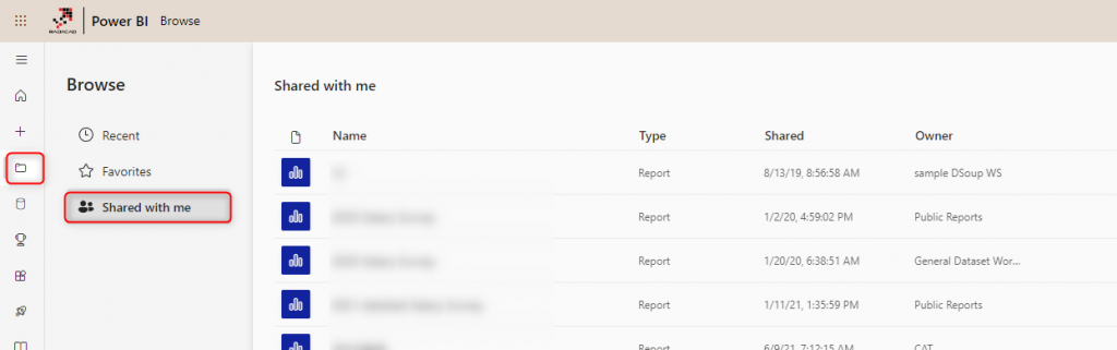 Users can easily click on the “Shared with me” section of their profile, and they will see all reports and dashboards shared with them from there.