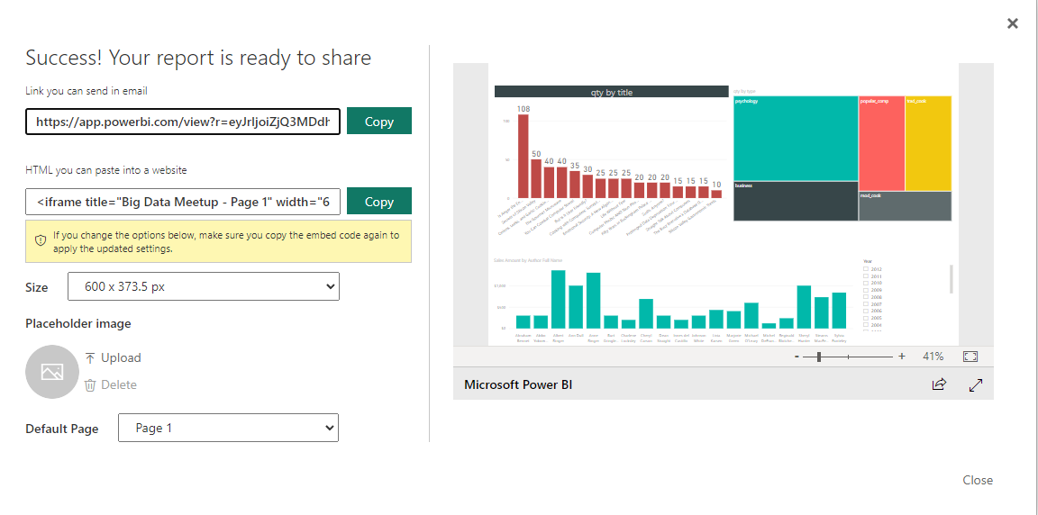 Sometimes, you don’t need a secure way of sharing, you may search for an easy and free way of sharing, and your content is not confidential or sensitive. Publish to web is your friend in such a situation. This is the only free way of sharing in Power BI, but be aware that this method is not secure.